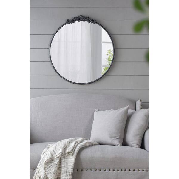 32 in. W x 30 in. H Round Iron Framed Wall Bathroom Vanity Mirror in Black