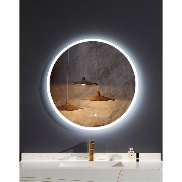 32 in. W x 32 in. H Round Rectangular Frameless Anti-Fog Wall Mounted LED Bathroom Vanity Mirror in Silver
