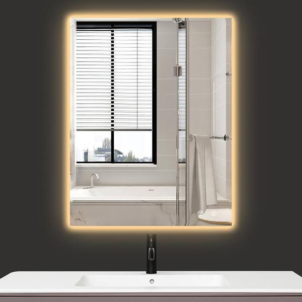 32 in. W x 40 in. H Rectangular Framed LED Luminous Wall Mount Bathroom Vanity Mirror in Silver