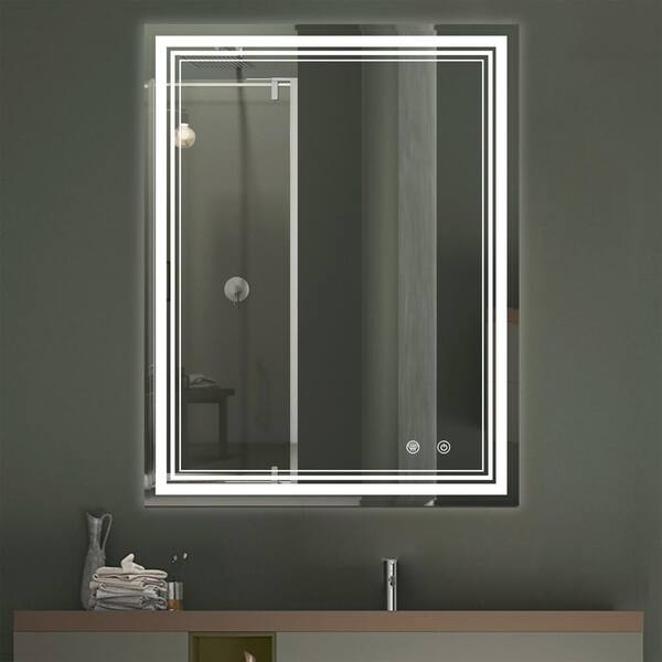 32 in. W x 40 in. H Rectangular Framed LED Mirror Anti-Fog Wall Mount Bathroom Vanity Mirror in Clear