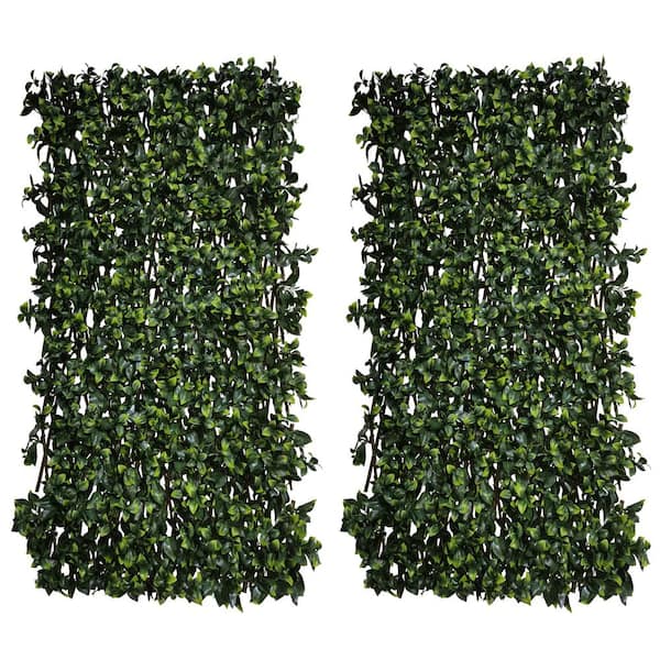 32 in. W x 50 in. H Artificial Leaf Hedges Fold Single Side Expandable Faux Gardenia Fencing (2-Pack)