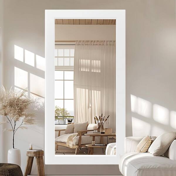 32 in. W x 71 in. H Modern Simple Rectangular White Wood Frame Bathroom Vanity Mirror Wall Mirror/Floor Mirror