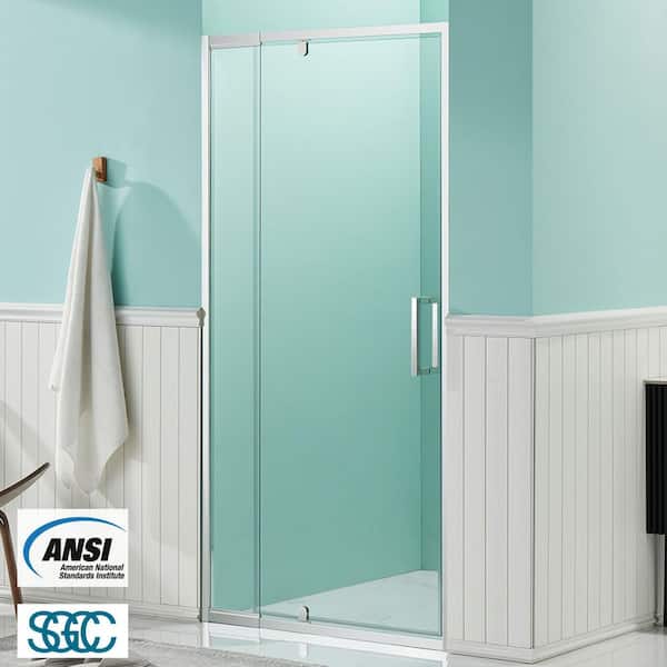32 in. to 36 in. W x 72 in. H Framed Pivot Shower Door in Chrome with Clear Glass