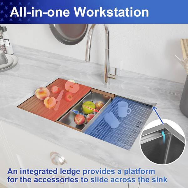 32 in. x 18 in. Undermount Single Bowl 18-Gauge Workstation Sink Stainless Steel Kitchen Sink
