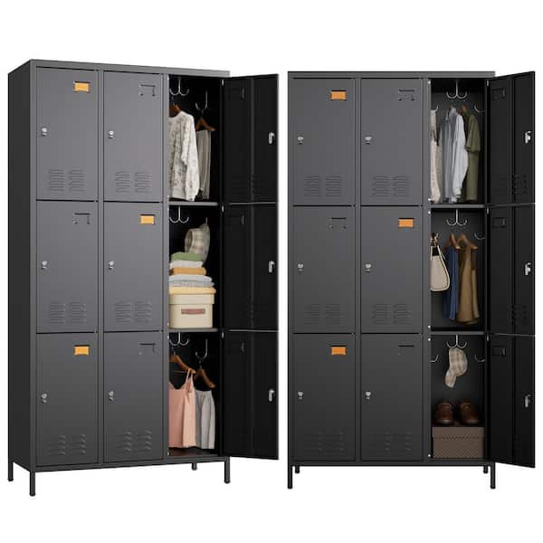 35.5 in. Wx 72 in. Hx 16 in. D Lockable Freestanding Cabinets with 9-Door, Locker for School, Gym and Home in Black
