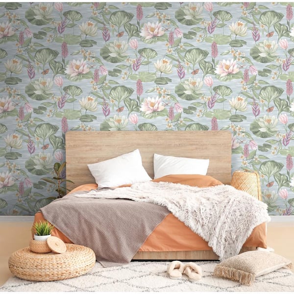 Water Lily Blue Non-Pasted Wallpaper (Covers 56 sq. ft.)