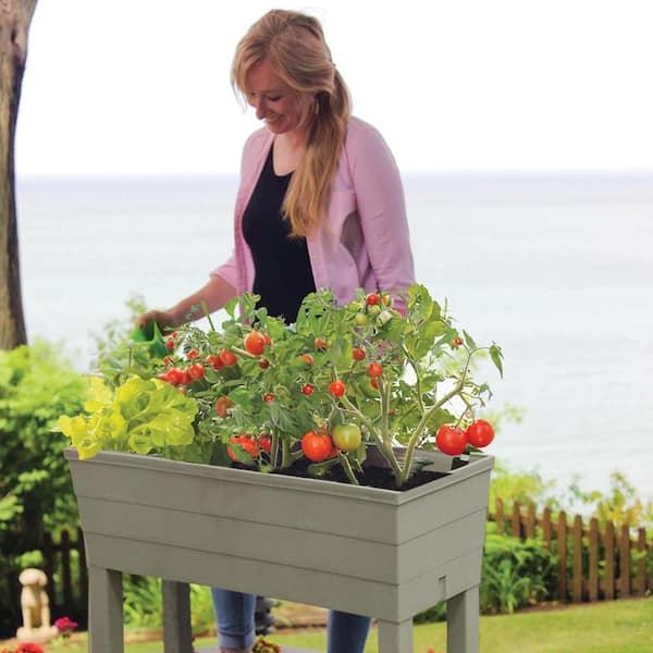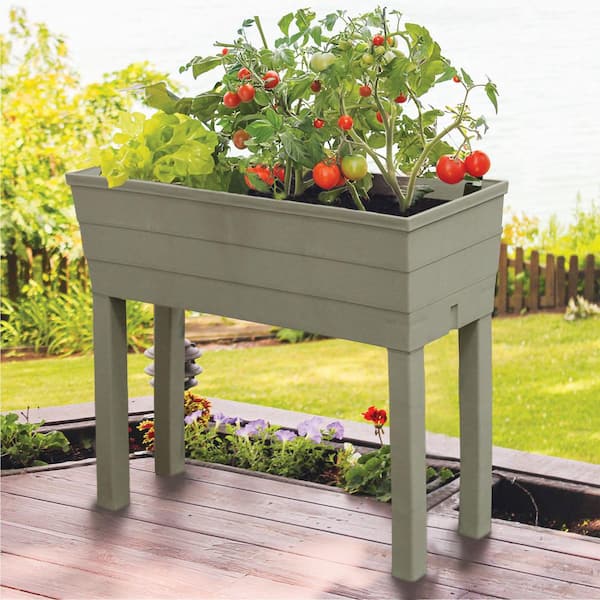 33 in. L x 13 in. W x 29 in. H Driftwood Gray Resin Elevated Garden Bed