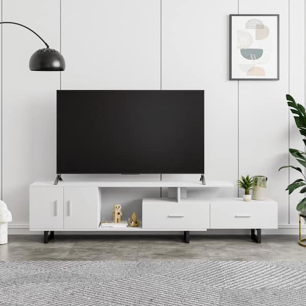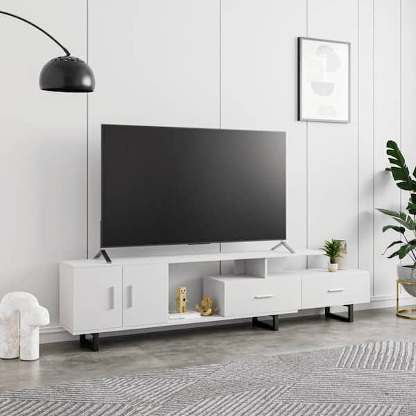 Avery Mid Century Modern Rectangular TV Stand with MDF Wood Cabinet and Powder Coated Steel Legs, White