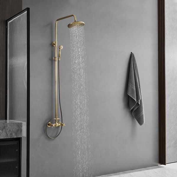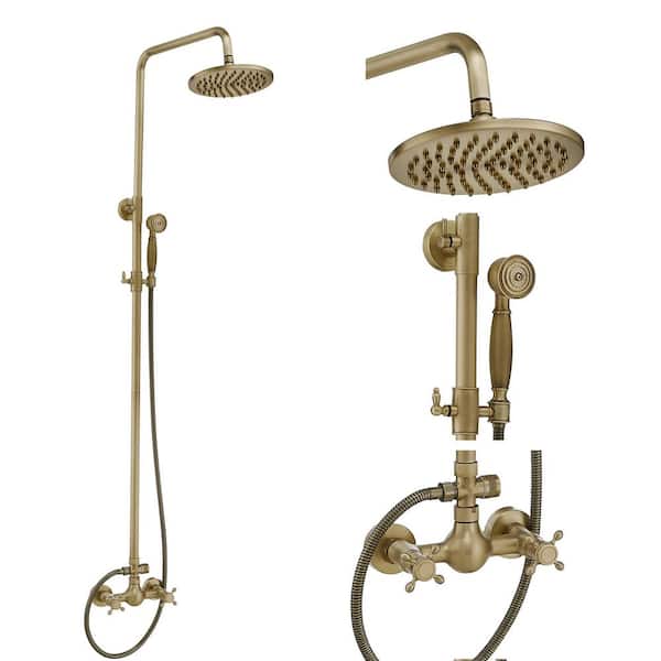 2-Spray Wall Slid Bar Round Rain Shower Faucet with Hand Shower 2 Cross Handles Mixer Shower System Taps in Antiqued