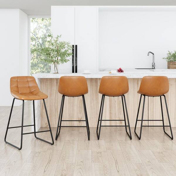 33.07 in. Whiskey Brown Mid Century Modern Low Back Metal Frame Counter Stool (Set of 4)