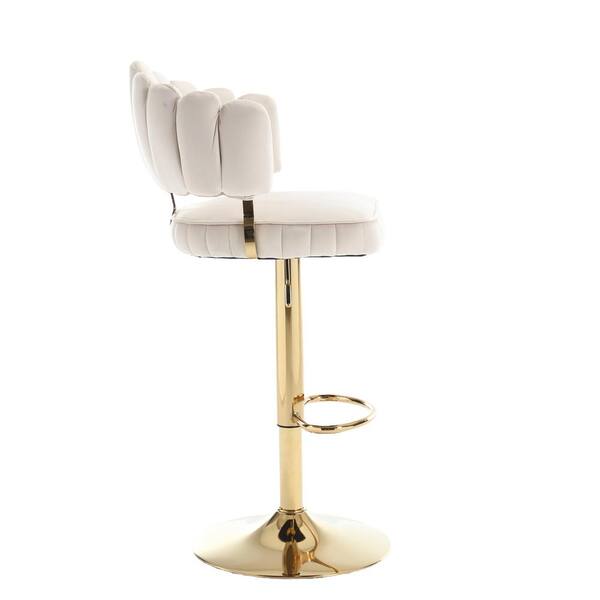 33.46 in. Ivory Velvet Low Back Metal Adjustable Swivel Bar Stools Set of 2