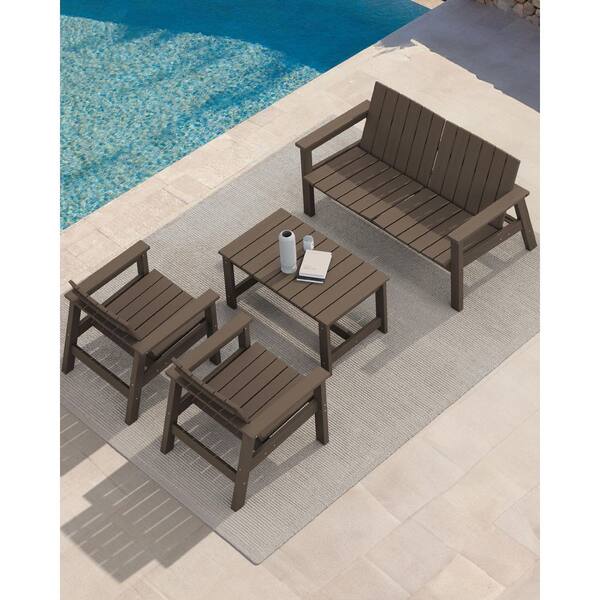33.7" D x 19.7" W x 16.5"H Rectangle Outdoor Coffee Table HDPE Patio Coffee Table for Outside in Coffee for Garden Patio