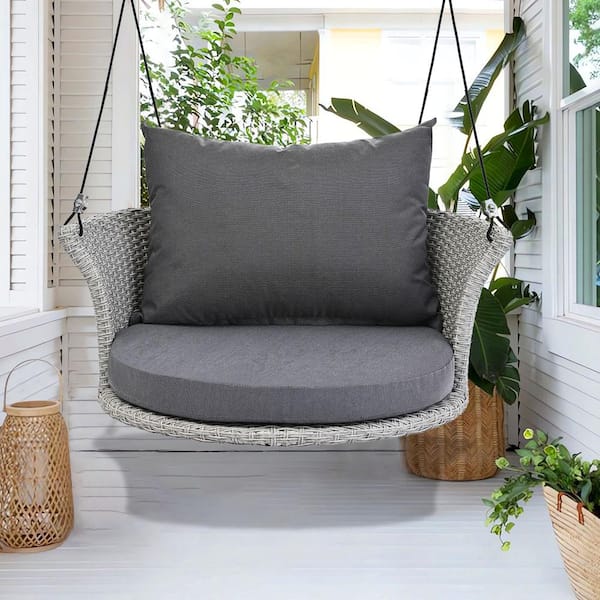 33.8 in. W 1-Person Gray Patio Wicker Porch Swing Rattan Woven Swing Chair with Gary Cushion
