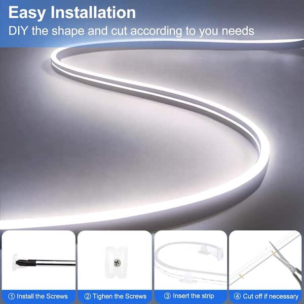 33 ft. Plug-In Neon Rope Lights Dimmable, Cuttable, Waterproof Integrated LED Strip Lights in Cool White