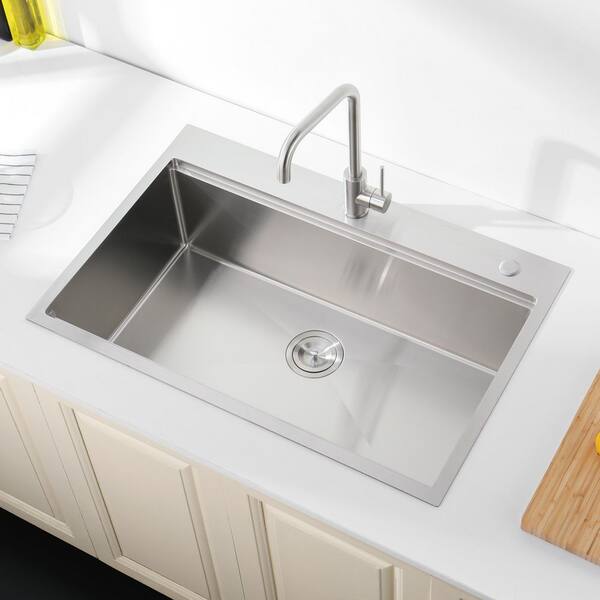 33 in. Drop-In Single Bowl 20 Gauge Gunmetal Gray Stainless Steel Kitchen Sink with Cutting Board, Colander