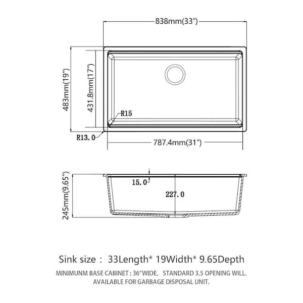 33 in. Drop-In/Undermount Single Bowl White Granite Composite Quartz Kitchen Sink