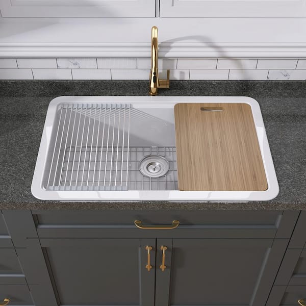33 in. Drop-in Kitchen Sinks Single Bowl Undermount Sink Large Fireclay White Farmhouse Sink Workstation Kitchen Sinks
