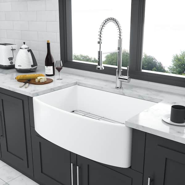 33 in. Farmhouse Single Bowl White Ceramic Kitchen Sink with Bottom Grids