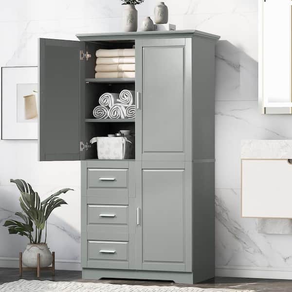 33 in. W x 20 in. D x 62 in. H Gray MDF Freestanding Linen Cabinet with Doors, Drawers and Adjusting Shelves