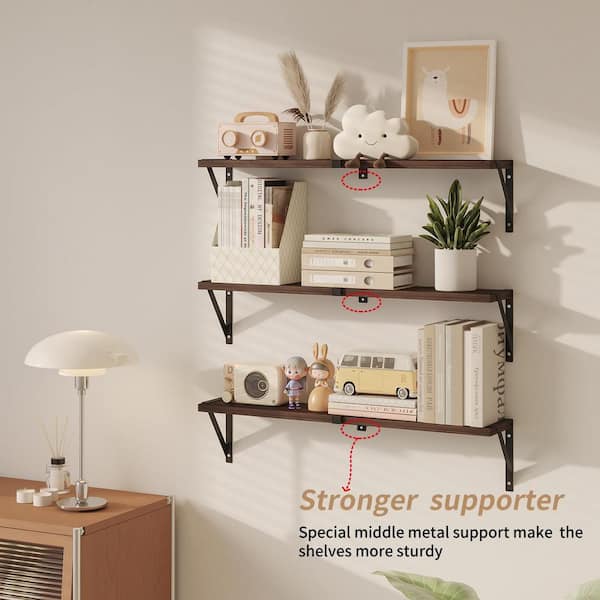 33 in. W x 7 in. D Dark Brown ​Wood Floating Decorative Wall Shelf (Set of 3)