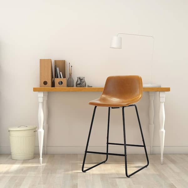 33 in. Whiskey Brown Low Back 24 in H Faux Leather Bar Stools Metal Frame Counter Height Bar Stools (Set of 2)
