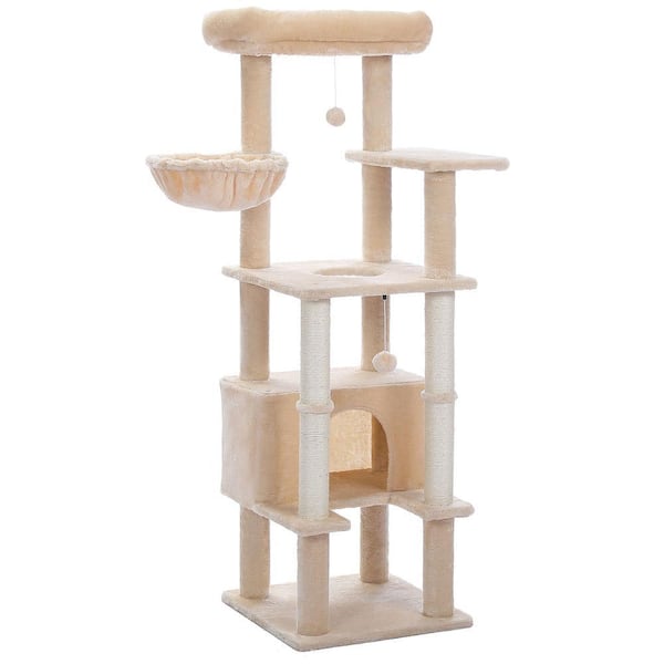 Medium and Large Cat 55 in.Plush Sisal Scratching Posts Indoor Cat Tree in Beige