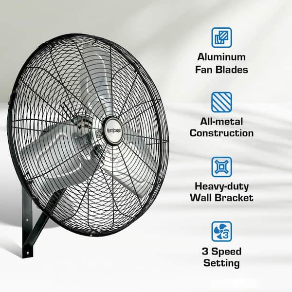 30 in. 3 Fan Speeds Commercial Grade Classic Oscillating Wall Fan in Black