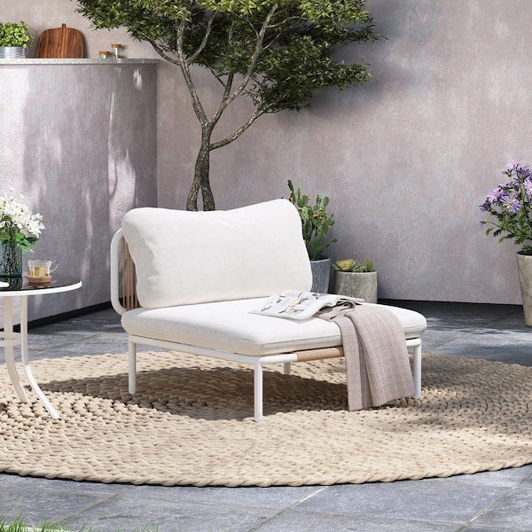 1-Piece Drawcord Metal Outdoor Sectional with Beige Cushions and Removable Armrests Patio Sectional Furniture Set