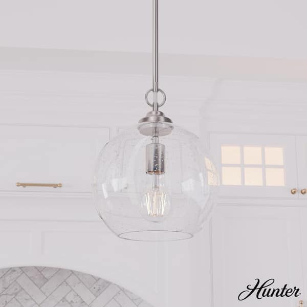High Oaks 60-Watt 1 Light Brushed Nickel Island Pendant Light with Clear Seeded Glass Shade, Bulb Not Included