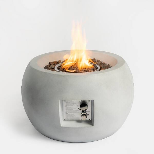 24 in. Outdoor Propane Fire Pit Table with Round Graphite Base with Waterproof Cover and Free Lava Rocks in Light Gray