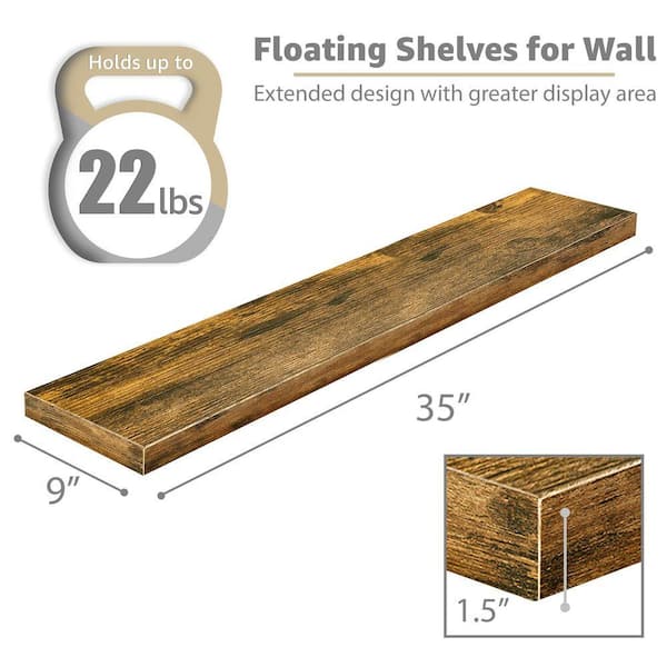 3-Pack Long Floating Shelves for Wall, 35 in. W x 9 in. D Walnut Wood Decorative Wall Shelf, Wall Mounted Home Decor