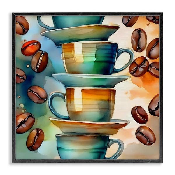 Coffee Beans and Mugs by Alina Georgescu Black Framed Food Giclee Art Print 12 in. x 12 in.