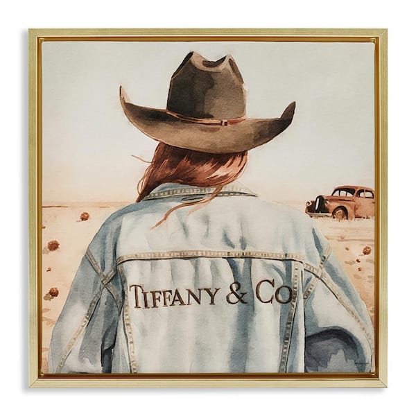 Trendy Brunette Cowgirl by Amanda Greenwood Gold Floater Frame People Graphic Art Print 25 in. x 25 in.