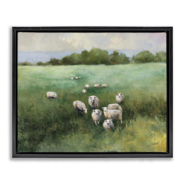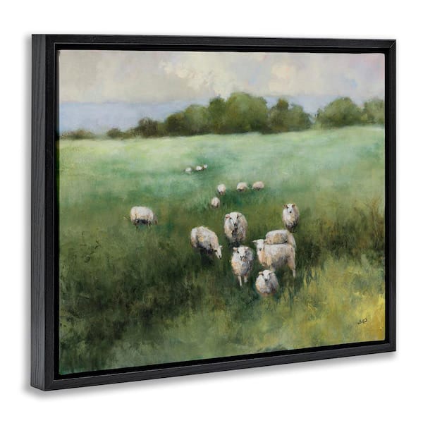 Field Day Sheep by Julia Purinton Black Floater Frame Nature Graphic Art Print 17 in. x 21 in.