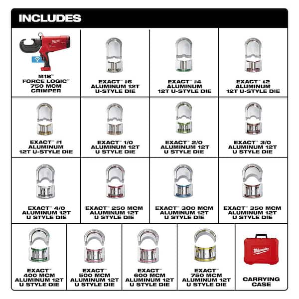 M18 18V Lithium-Ion Cordless FORCE LOGIC 750 MCM Crimper with #6-750 MCM Al Dies
