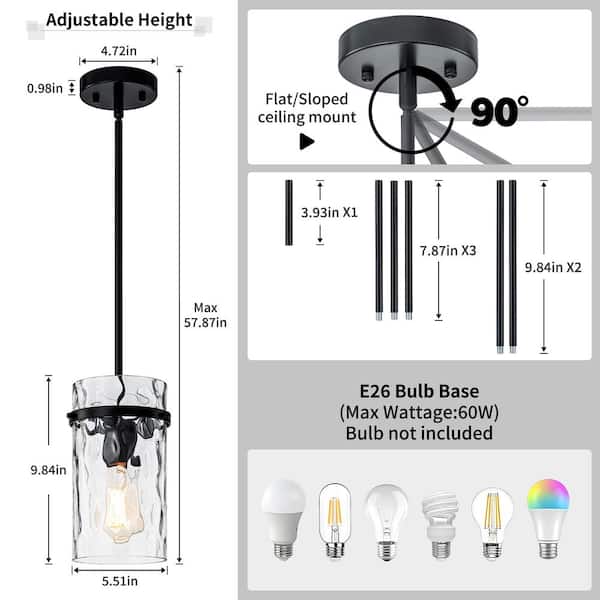 • Compatible with E26 base bulbs up to 60W (bulb not included)