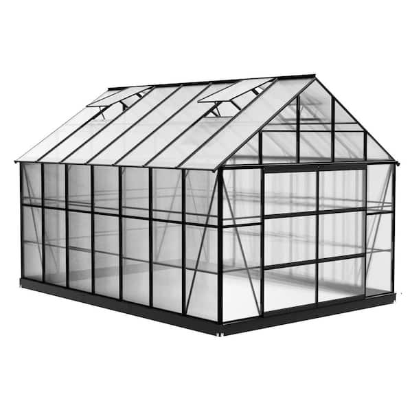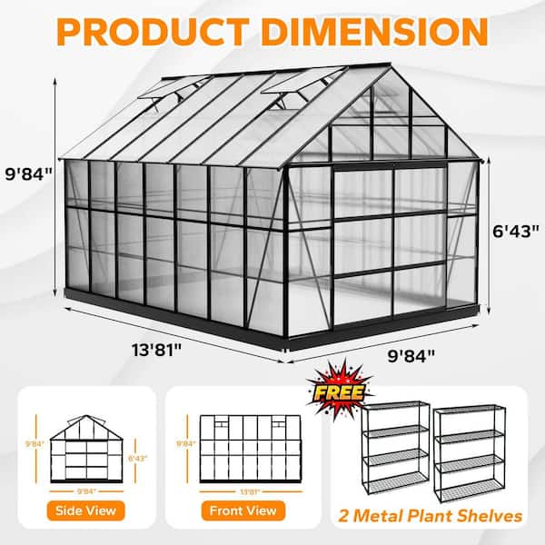 10 ft. x 14 ft. Outdoor Polycarbonate Greenhouse with 2-Piece Plant Stands, Quick Setup Structure and Roof Vent
