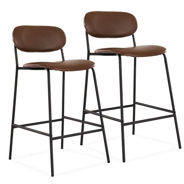 34.25 in. Dark Brown Low Back Faux Leather Counter Height Bar Stools with Metal Frame(Set of 2)