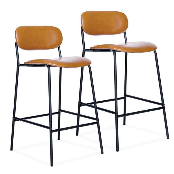 34.25 in. Whiskey Brown Low Back Faux Leather Counter Height Bar Stools with Metal Frame(Set of 2)