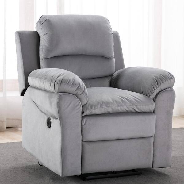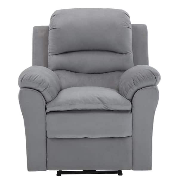 34.25 in. Width Big and Tall Gray Cotton 2-Point Massage Power Recliner