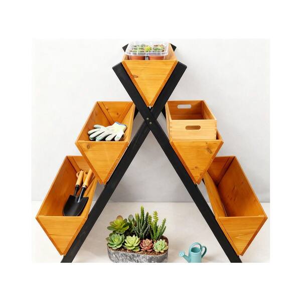 34.6 in. x 29.5 in. x 32.6 in. 3 Tiers Brown Wooden Vertical Raised Garden Bed with Legs, Planter Raised Beds Kit
