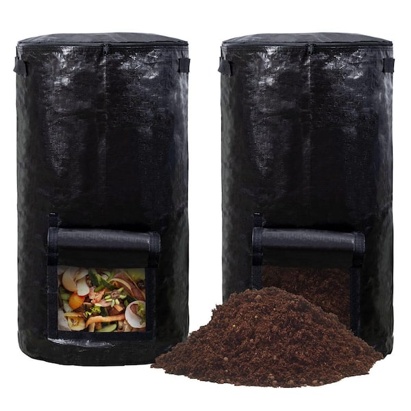 34 Gal. Compost Bins Outdoor-Composting Bin for Garden, Reusable Yard Waste Bags, 2-Pack, Heavy-Duty Black Design