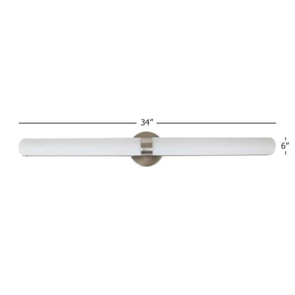 34 in. 1-Light Brushed Nickel LED Vanity Light Bar with Clear Diamond Textured Acrylic Shade