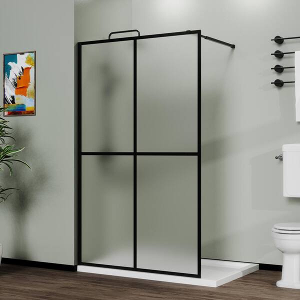 34 in. W x 72 in. H Fixed Framed Shower Door in Black with Frosted Glass