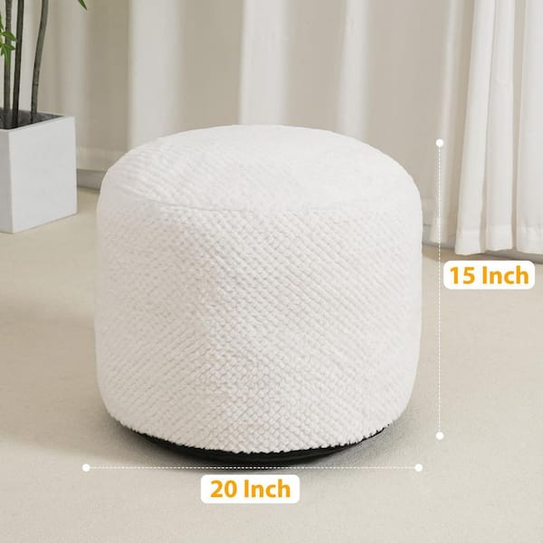 Suede White Faux Fur Round Ottoman Pouf with Foam Chunk Filling, Supportive Storage Floor Chair for Living Room Bedroom