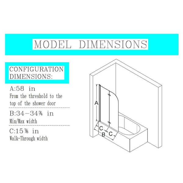 34in. W x 58 in.H Frameless Folding Pivot Shower Door in Brushed Gold with 1/4 Clear Tempered Glass for Bathroom Bathtub