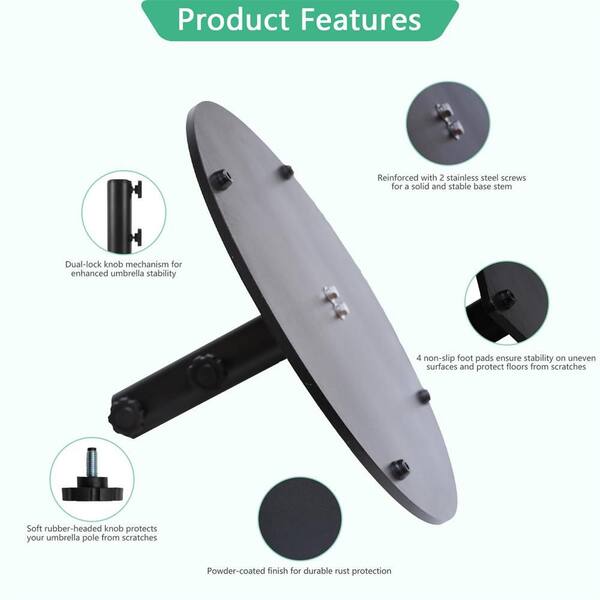 34lbs Heavy Duty Round Metal Patio Umbrella Base in Fits 7 to 11ft Umbrellas, Black