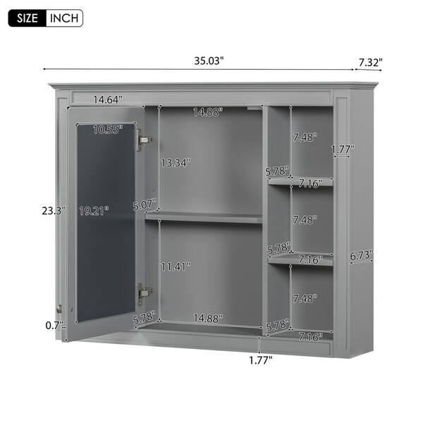 35.03 in. W x 27.5 in. H Rectangular MDF Medicine Cabinet with Mirror in Grey