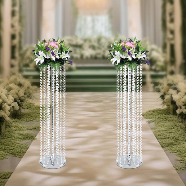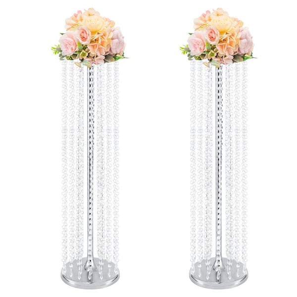 35.4 in. Tall Metal Centerpieces Vases Wedding Flower Stand in Silver (2-Pieces)