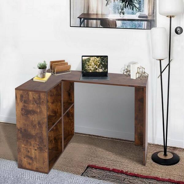 35.4 in. W Rustic Brown L-Shaped Computer Writing Corner Desk with 2-Shelves for Home Office Study